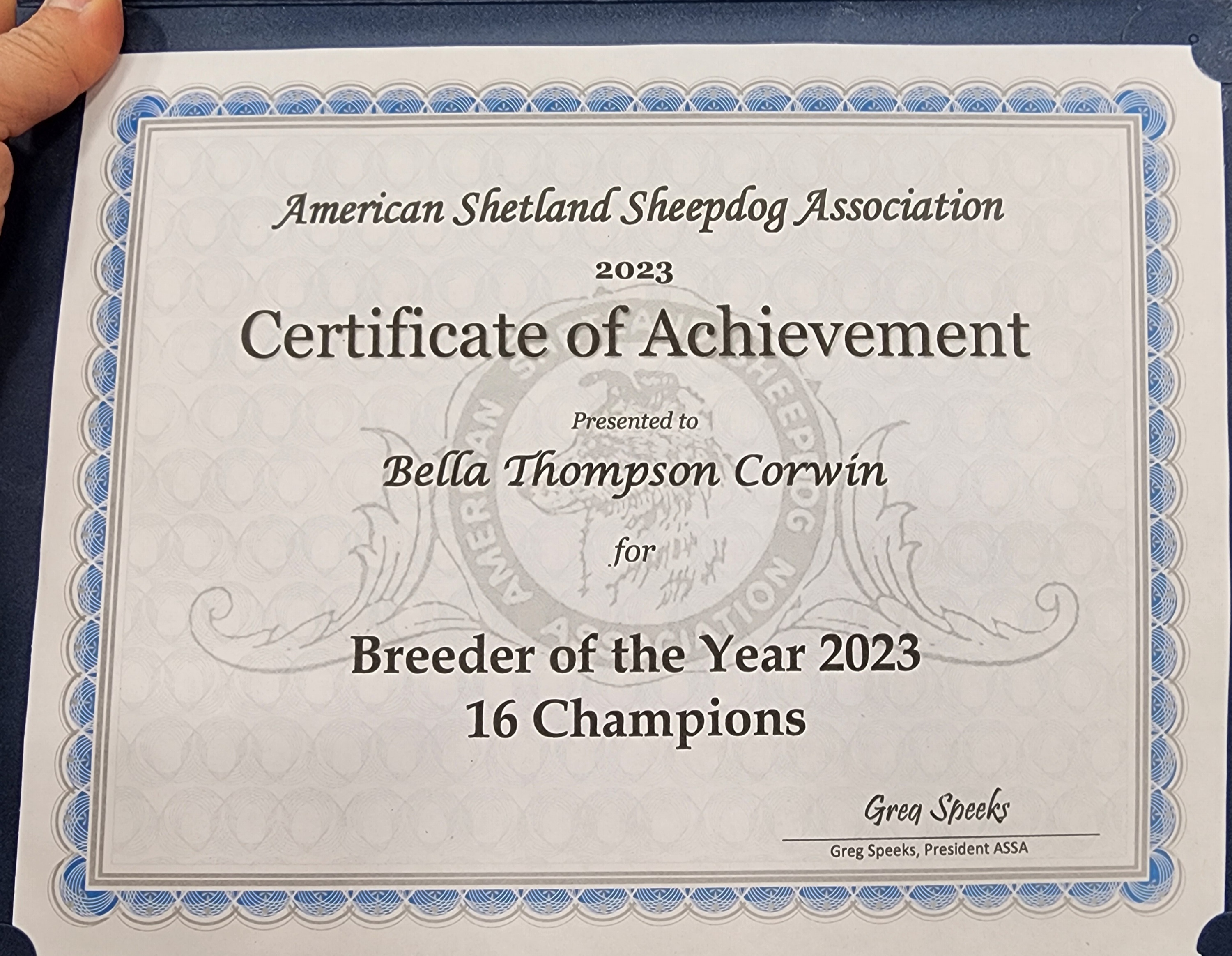 We also won the ASSA Breeder Of Most Champions award for 2024!