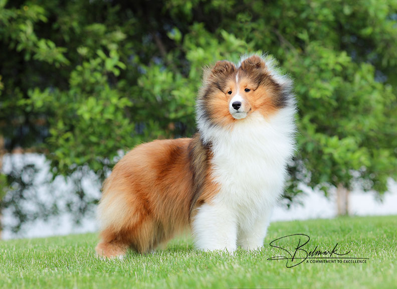 Sandy is lovely, she has a wonderful personality and perfect markings, nice body lines, plenty of red coat and a lovely headpiece with a lean skull. She is a perfect blend of sire and dam. Her brother is almost finished. Dam will be out later this year. We love this sweet girl. Hope to have her out soon. |